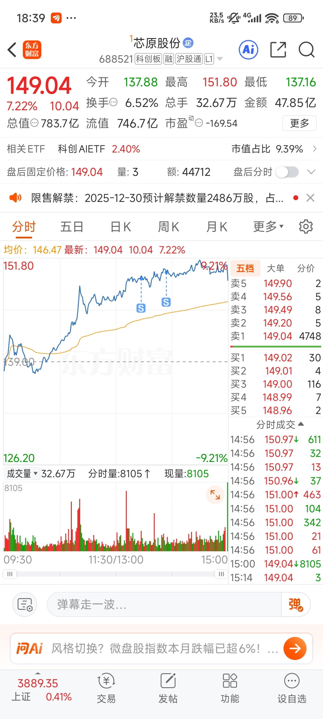 $芯原股份(SH688521)$ 我感觉,明天至少要跌八个点!所以今天我止盈了。祝留下的兄弟们发财,发大财,希望我的判断是错的。