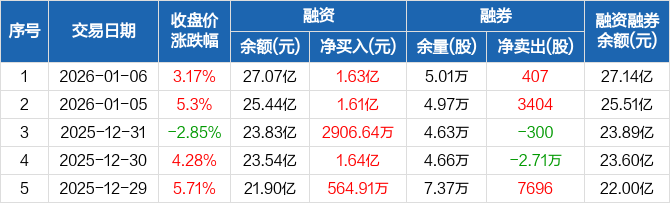 芯原股份:融资余额27.07亿元,创历史新高(01-06)