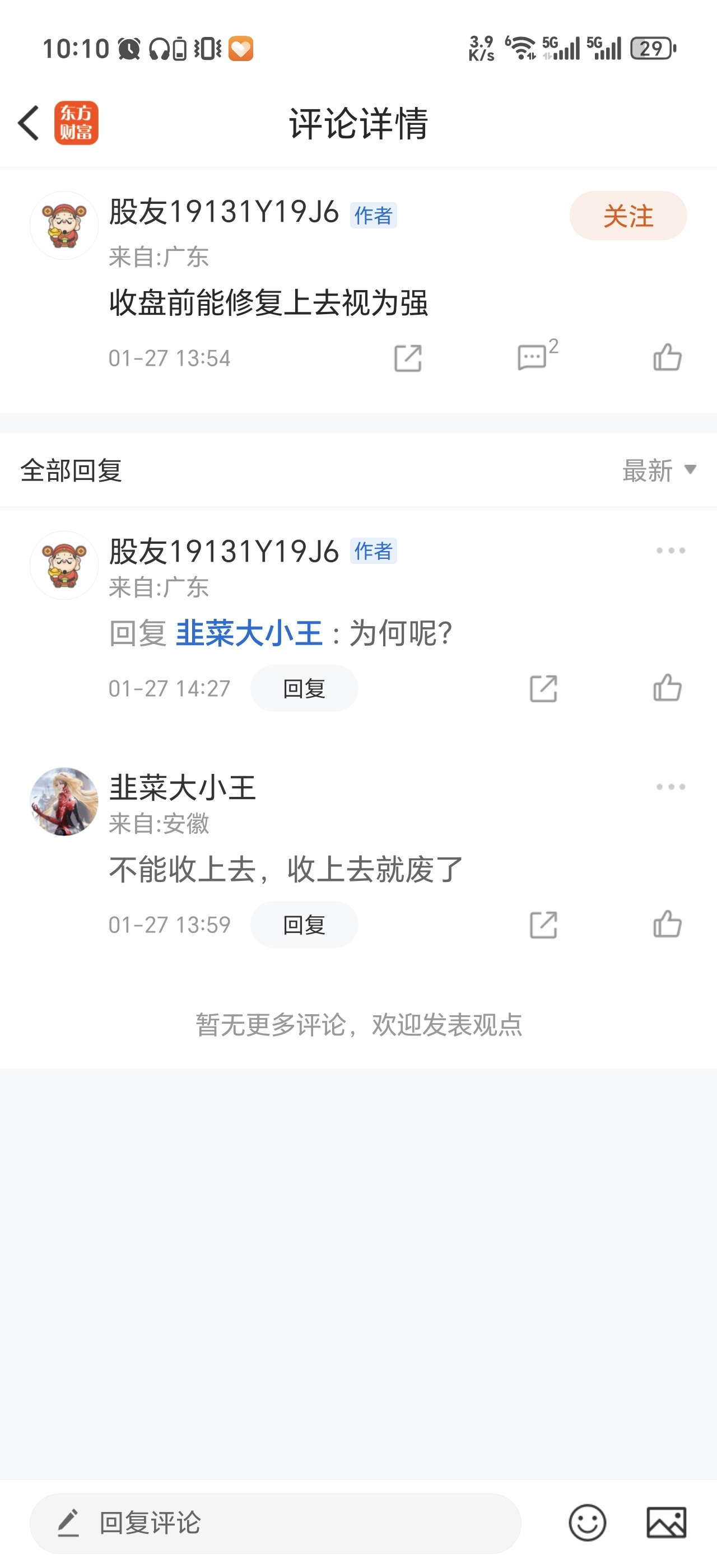 温馨提示: 1.根据《证券法》规定,禁止编造、传播虚假信息或者误导性信息,扰乱证券市场;2.用户在本社区发表的所有资料、言论等仅代表个人观点,与本网站立场无关,不对您构成任何投资建议。用户应基于自己的独立判断,自行决定证券投资并承担相应风险。《东方财富社区管理规定》