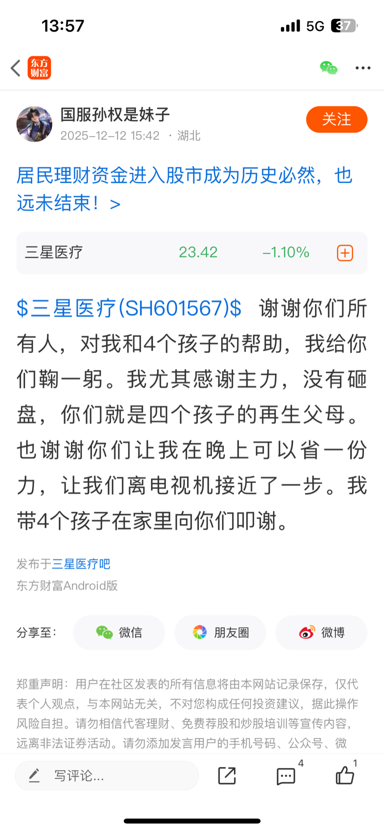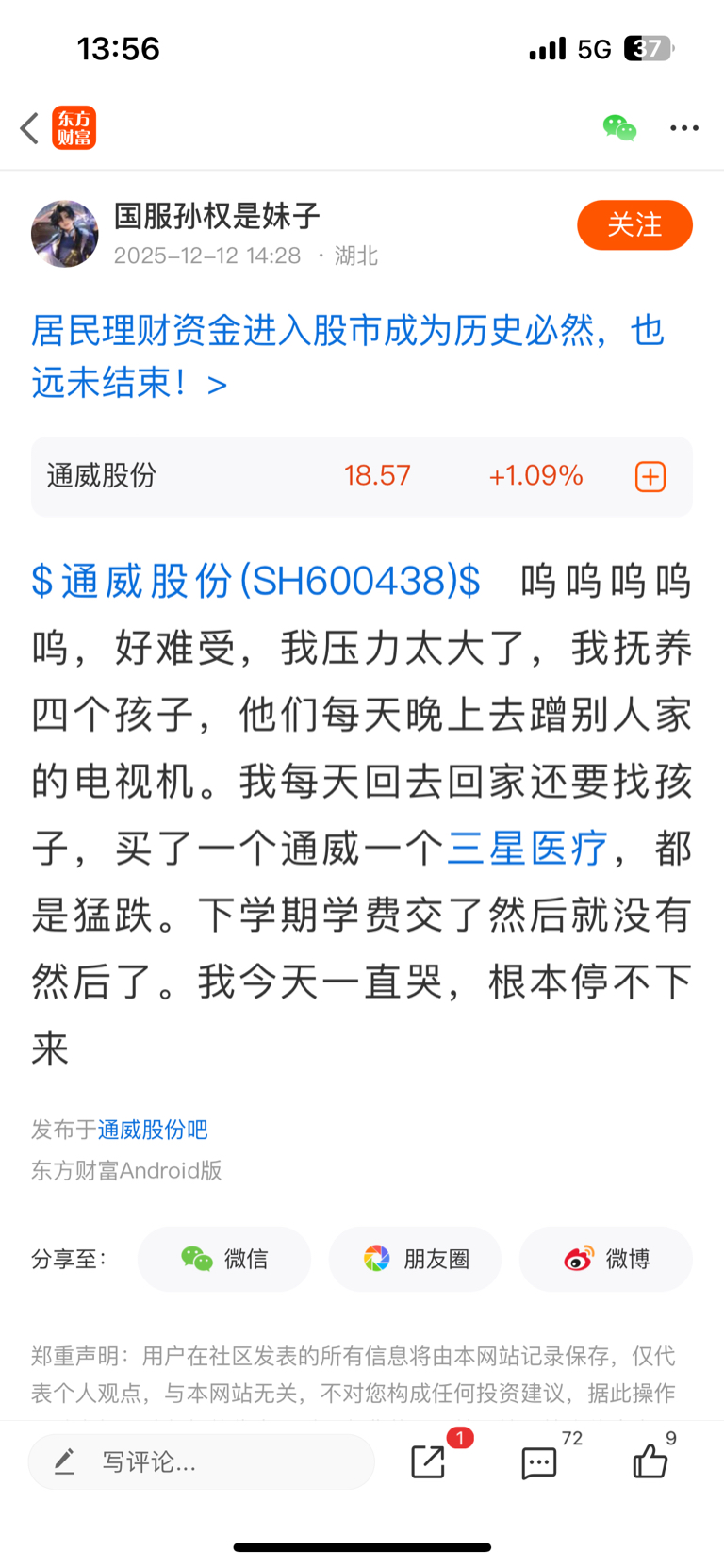 温馨提示: 1.根据《证券法》规定,禁止编造、传播虚假信息或者误导性信息,扰乱证券市场;2.用户在本社区发表的所有资料、言论等仅代表个人观点,与本网站立场无关,不对您构成任何投资建议。用户应基于自己的独立判断,自行决定证券投资并承担相应风险。《东方财富社区管理规定》