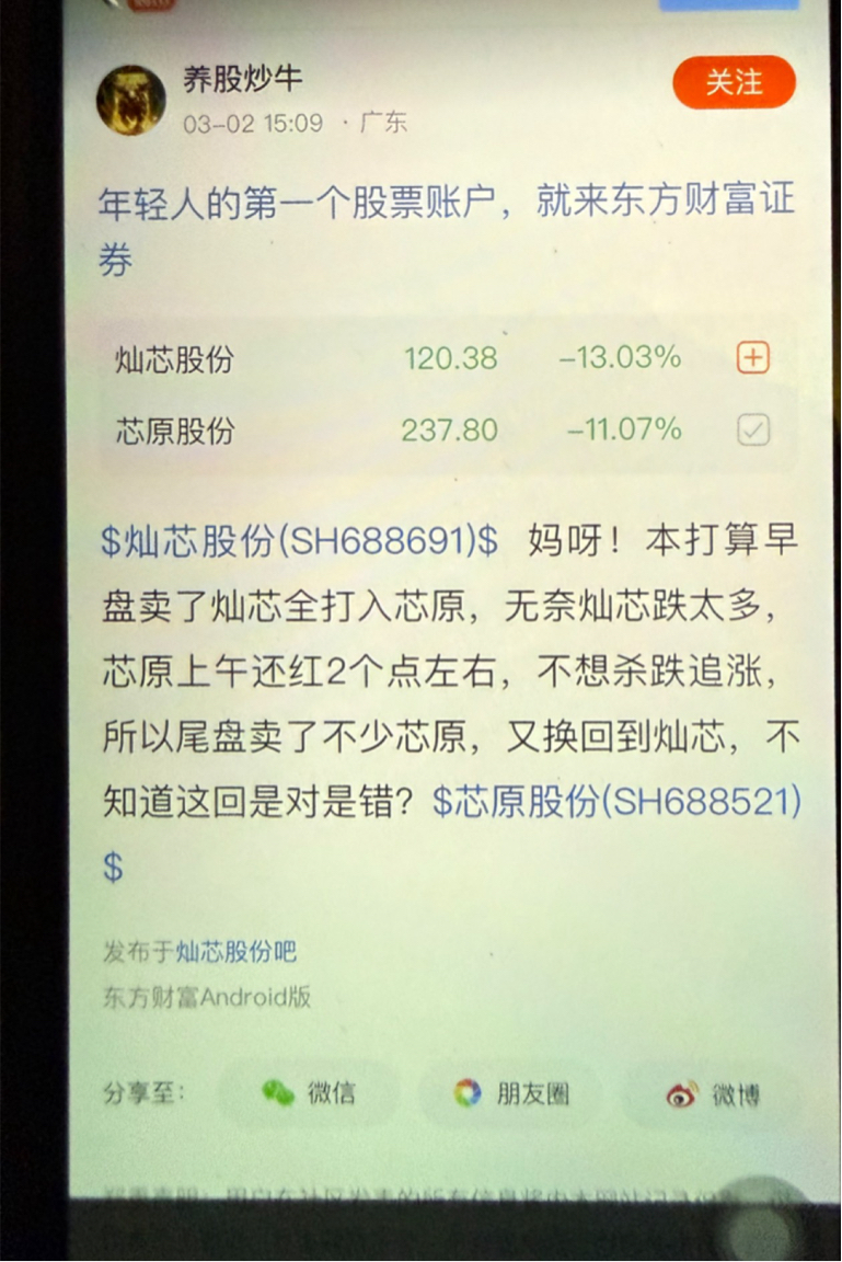 温馨提示: 1.根据《证券法》规定,禁止编造、传播虚假信息或者误导性信息,扰乱证券市场;2.用户在本社区发表的所有资料、言论等仅代表个人观点,与本网站立场无关,不对您构成任何投资建议。用户应基于自己的独立判断,自行决定证券投资并承担相应风险。《东方财富社区管理规定》