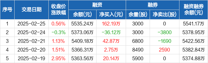 航天环宇:融资净买入162.19万元,融资余额5535.24万元(02-25)