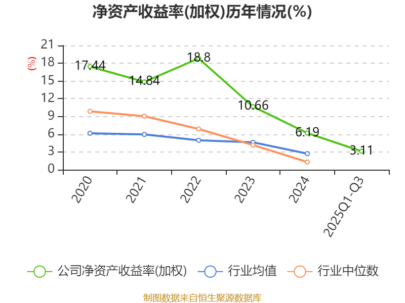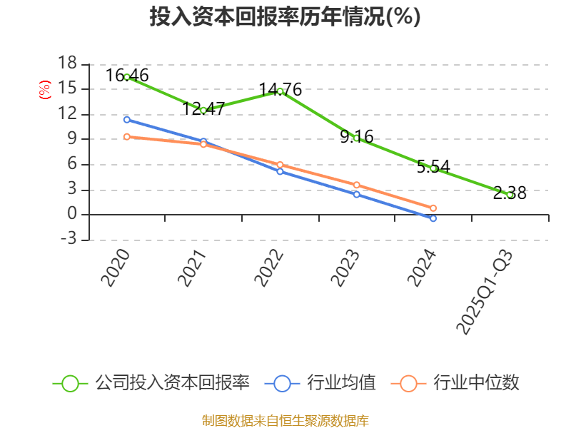 盈利能力方面, 2025年前三季度公司加权平均净资产收益率为3.11%,同比下降0.03个百分点。公司2025年前三季度投入资本回报率为2.38%,较上年同期下降0.38个百分点。