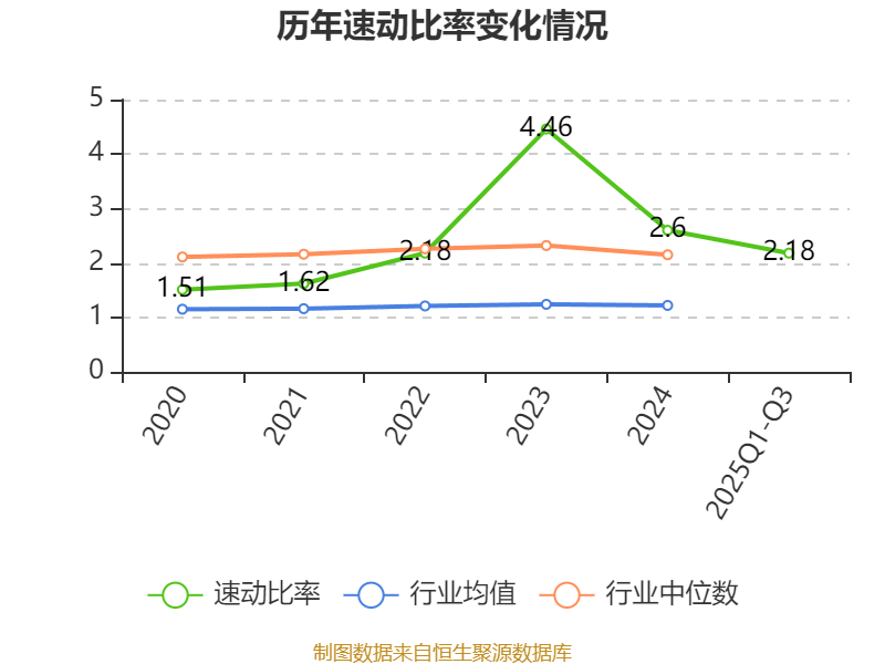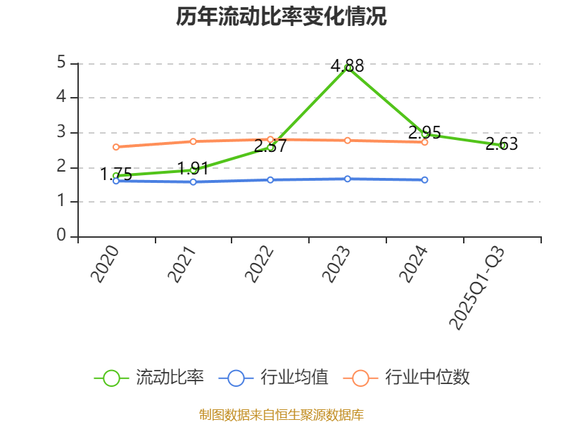 2025年前三季度,公司流动比率为2.63,速动比率为2.18。
