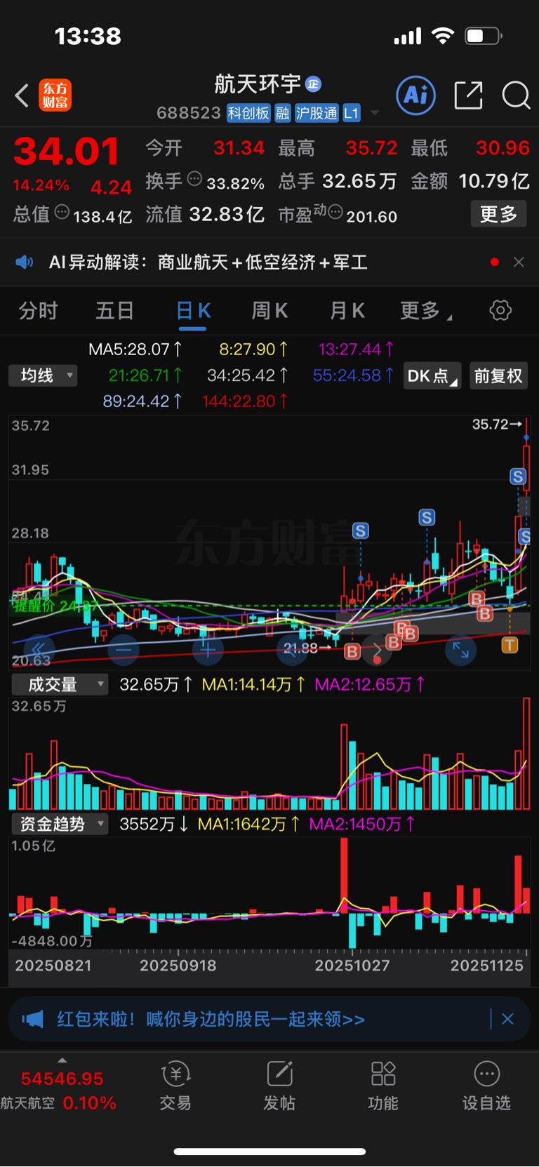 $航天环宇(SH688523)$ 清仓了,玩了三次,挣了三次,最后这次挣的最多