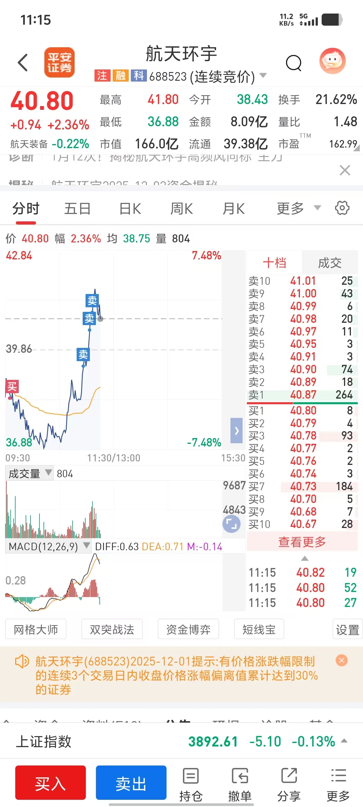 $航天环宇(SH688523)$ 可惜,可惜,没买在最低,也没卖在最高。分三次卖了3000股,还留着4500股,看能不能到50