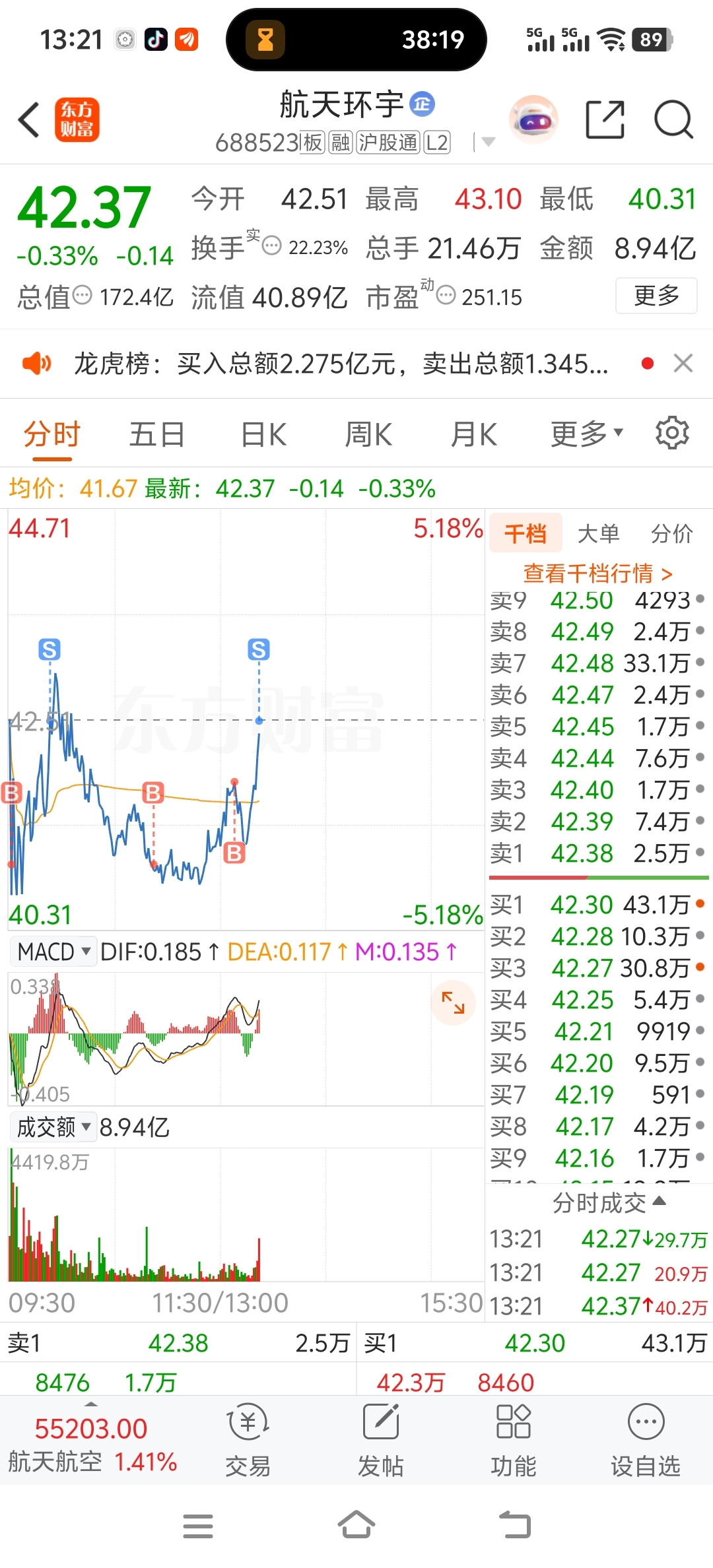 $航天环宇(SH688523)$ 可以拉了主力,t玩了