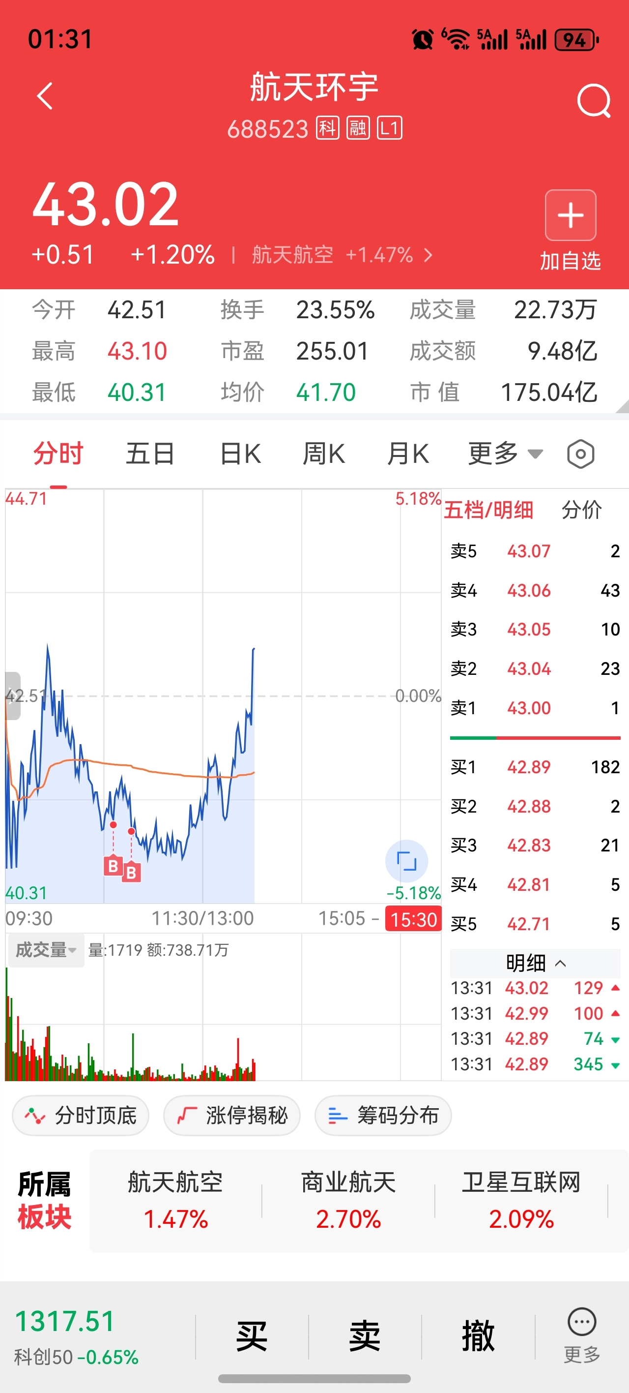 $航天环宇(SH688523)$ 还是觉得你有龙头相!