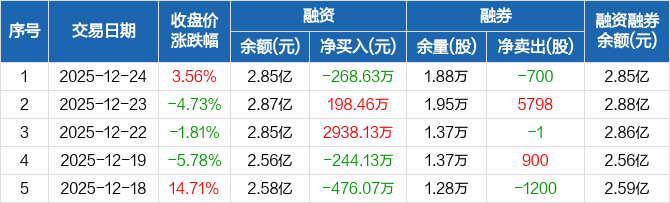 航天环宇:融资净偿还268.63万元,融资余额2.85亿元(12-24)