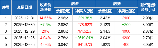 航天环宇:融资净偿还221.38万元,融资余额2.96亿元(12-31)