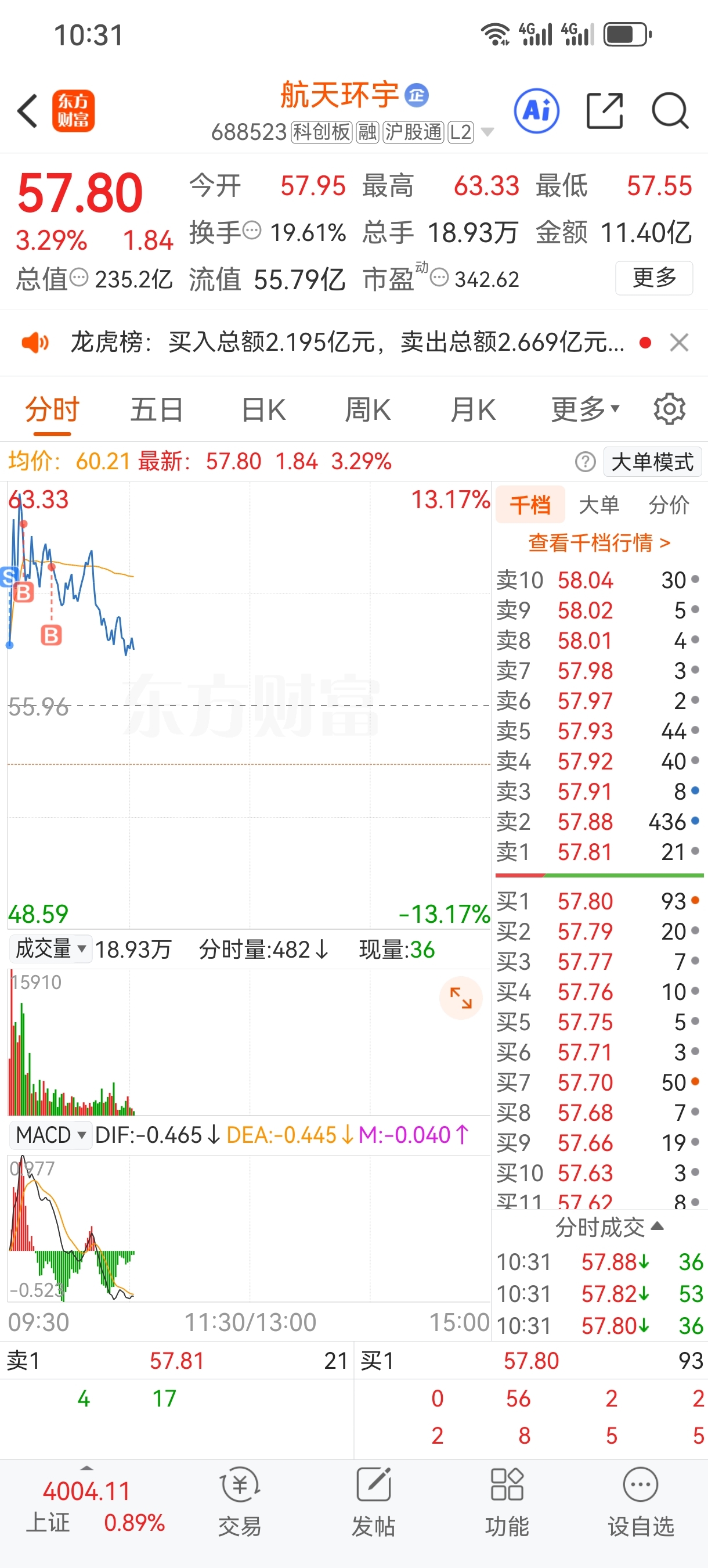$航天环宇(SH688523)$ 早上高开本来想走了,为啥又会去追,真手欠喔
