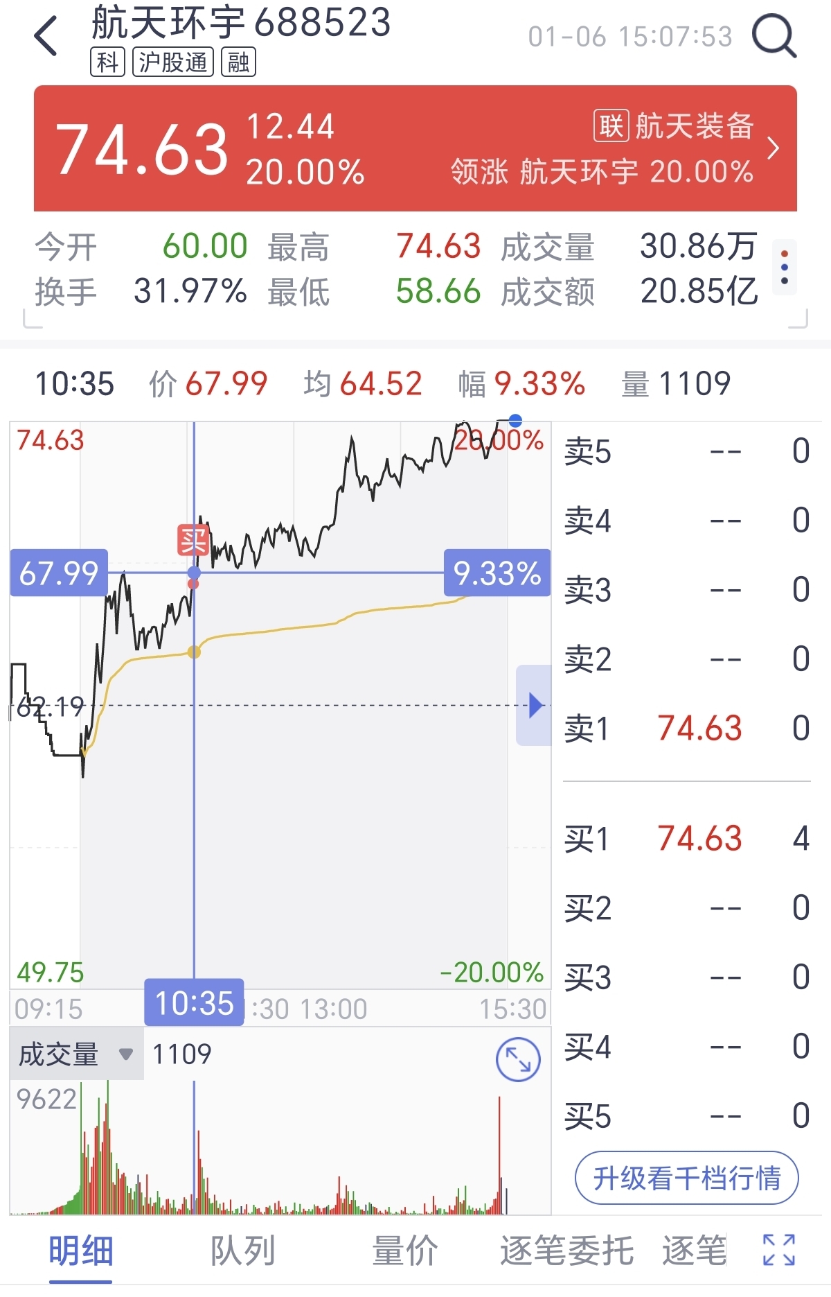 $航天环宇(SH688523)$ 追高买入,明天红盘就出!