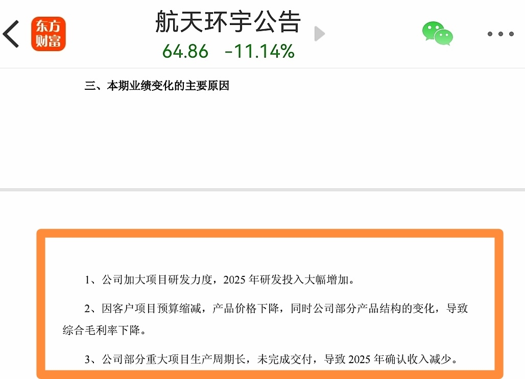 $航天环宇(SH688523)$ 重大利好!看报表,要看全!分明是个大利好,你若不懂,就少哔几声。又不亏本,只是少赚而已。公告中,已经解释了如下3点原因: