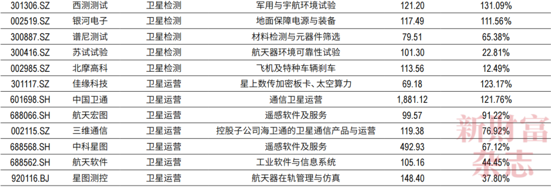 其二是卫星相关上市公司,包括卫星制造及基本组件、载荷功能部件、地面设备及产品、卫星检测、卫星运营、上游材料等多个板块。