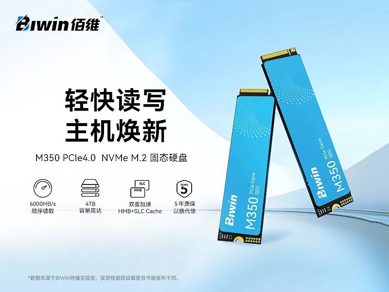 数字时代数据量迎来爆发式增长,用户对存储设备的需求已从“能用”跃升至“高速、稳定、耐用”。作为全球领先的存储解决方案领航者,佰维全新推出高性价比SSD新品——M350 PCIe Gen4×4 M.2 SSD,补全SATA3.0到PCIe 4.0、PCIe 5.0的SSD产品阵容,充分覆盖从入门级用户到专业发烧友的存储全场景需求,为游戏玩家、创意工作者和AI模型部署训练提供全新选择。
