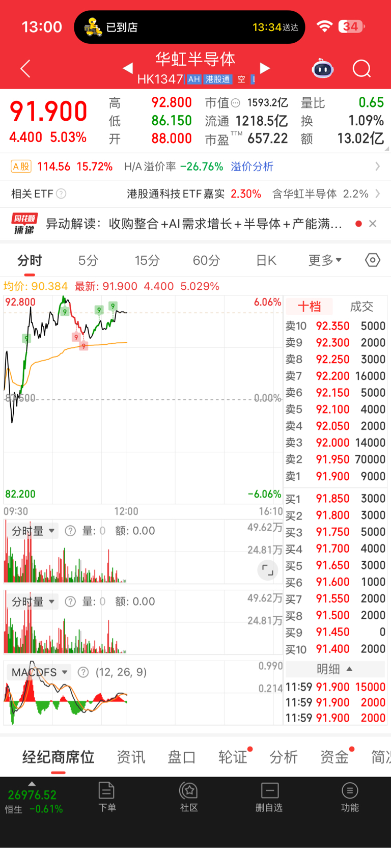 $佰维存储(SH688525)$ 10:47:01【华虹半导体港股涨近6% 再创历史新高】财联社10月6日电,华虹半导体港股涨近6%,再创历史新高,21个交易日股价翻倍。消息面上,高盛上调华虹半导体港股目标价,称中国不断扩大的AI生态为半导体带来机遇。(来自财联社APP)