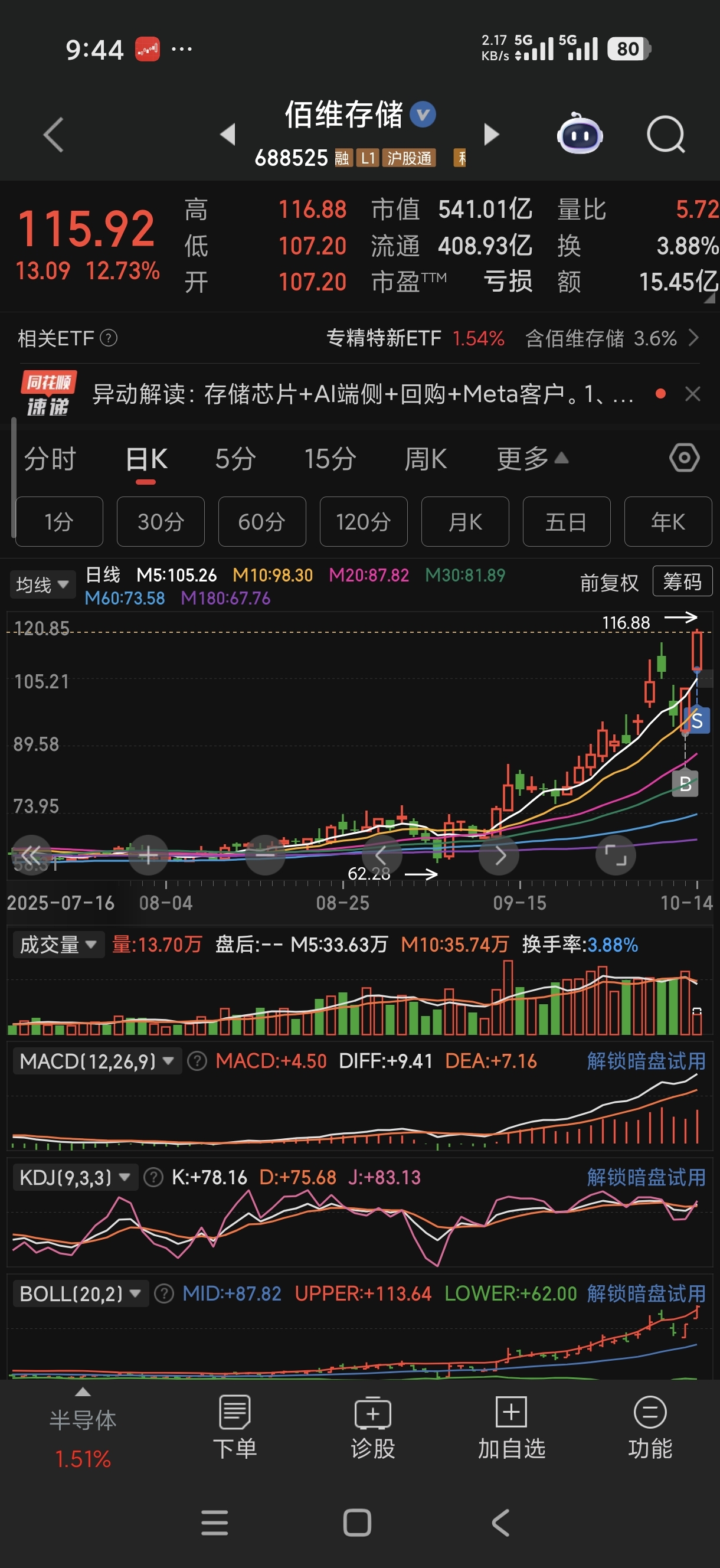 $佰维存储(SH688525)$ 跟公众号远见识股买的,两天赚20%