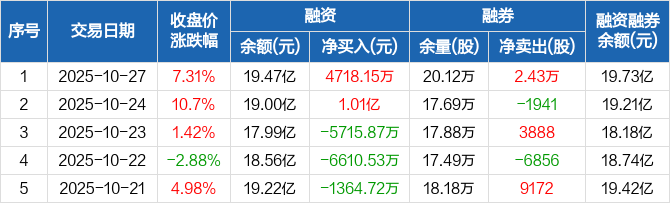 佰维存储:融资净买入4718.15万元,融资余额19.47亿元(10-27)