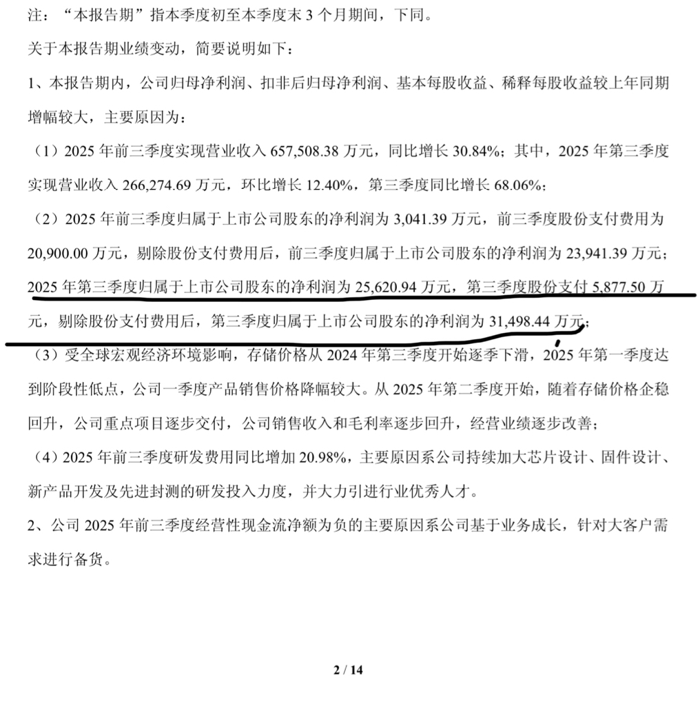 $佰维存储(SH688525)$ 单独第三季度的业绩还是相当炸裂的。伴随芯片涨价为今年第四季度业绩及全年提供很好的支撑
