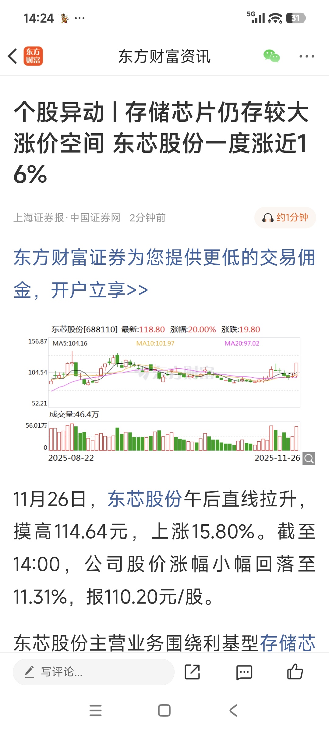 东芯股份20点板了,存储芯片只有东芯股份一家强势