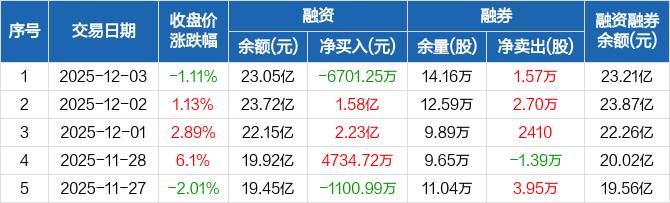 佰维存储:融资净偿还6701.25万元,融资余额23.05亿元(12-03)