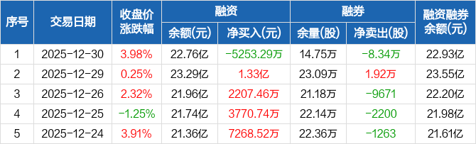 佰维存储:融资净偿还5253.29万元,融资余额22.76亿元(12-30)