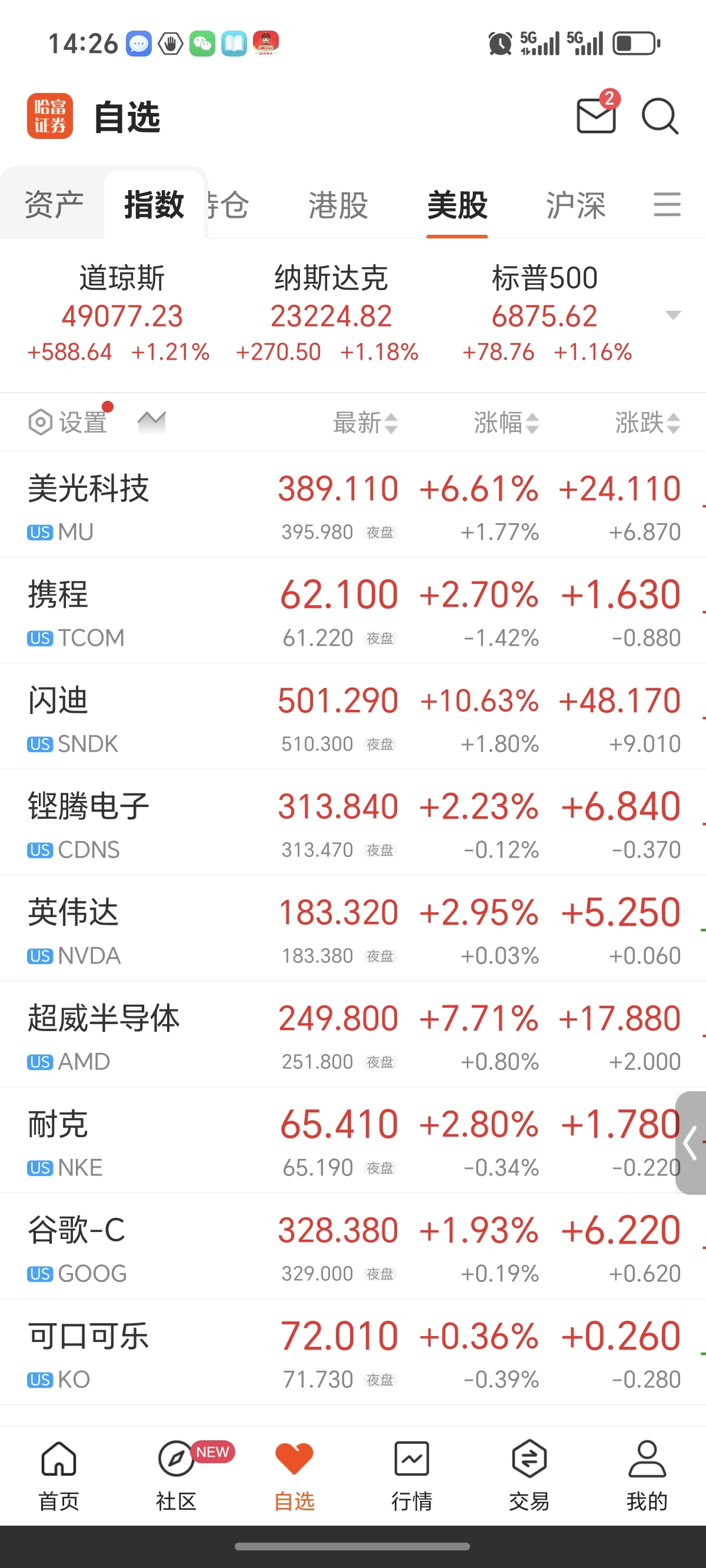 美股的存储芯片都在大涨,夜盘也在涨。看看你