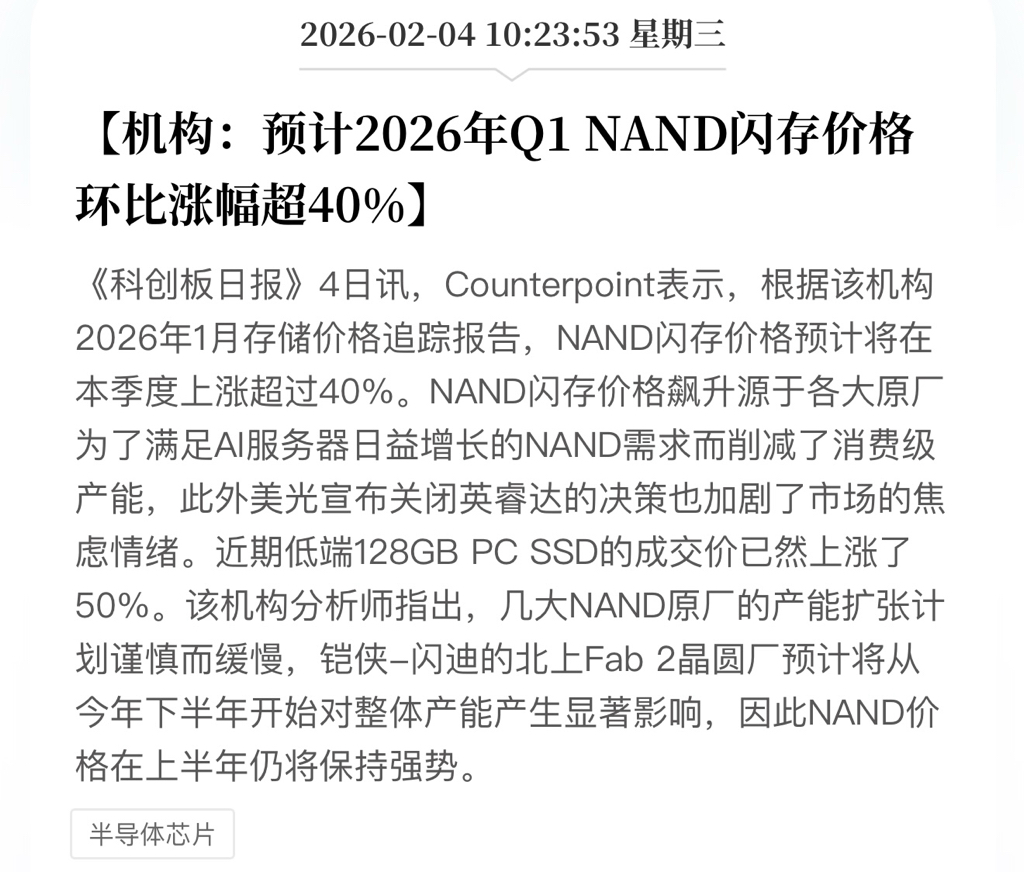 咋滴,存储不涨价了?供应也不短缺了?