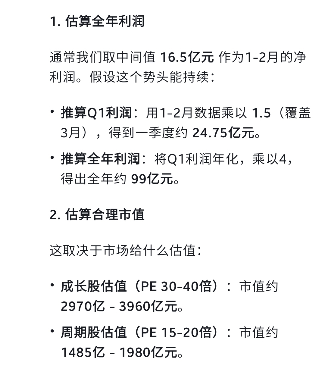 按1-2月的净利润估算市值,Deepseek给出的市值是3000亿到4000亿左