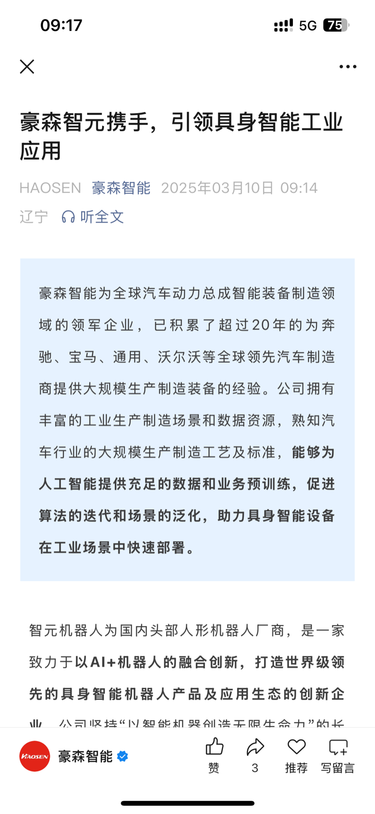 $豪森智能(SH688529)$ 管理层终于开窍了,懂得盘前发利好了