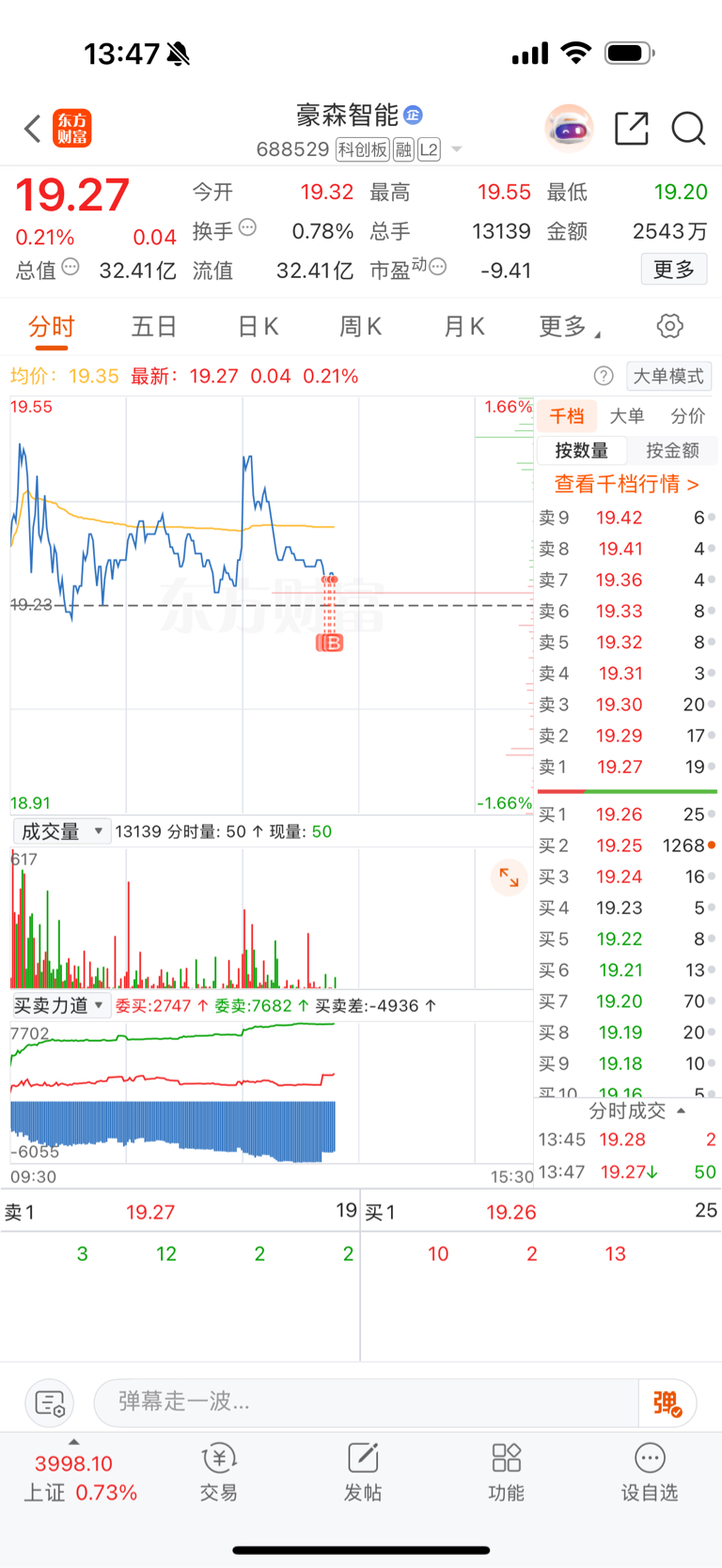 $豪森智能(SH688529)$ 卖出的全是小散单 ,干,给我起