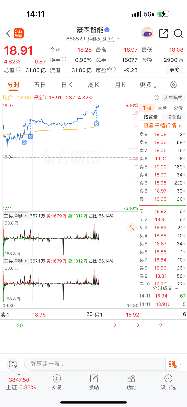 $豪森智能(SH688529)$ 闹哪样?给我下来