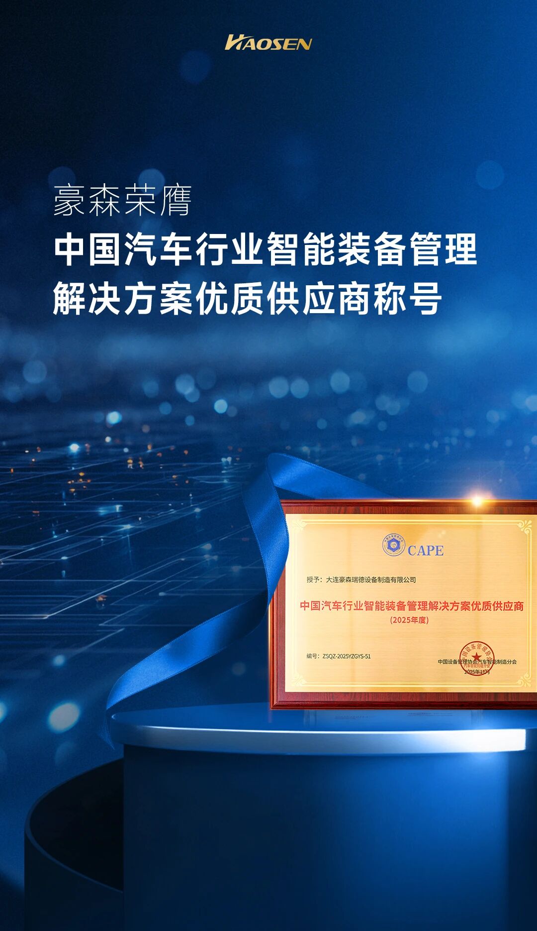 11月26日,第三届汽车行业标杆智能工厂和数字化车间交流大会在北京举行。本次大会以“智造跃迁 标杆引领”为主题,由中国设备管理协会汽车智能制造分会主办,汇集了全国主流汽车制造企业、解决方案提供商及行业专家。豪森受邀出席,并凭借在智能制造领域深厚的技术积淀与成熟的实践案例,经赛力斯集团推荐及大会评审委员会综合评定,荣获“2025年度中国汽车行业智能装备管理解决方案优质供应商”称号。