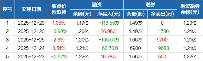 豪森智能:融资净偿还116.59万元,融资余额1.19亿元(12-29)