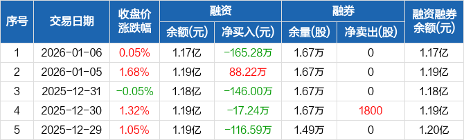 豪森智能:融资净偿还165.28万元,融资余额1.17亿元(01-06)