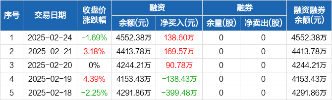 欧莱新材:连续3日融资净买入累计398.95万元(02-24)