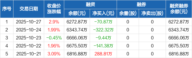 欧莱新材:连续4日融资净偿还累计544.02万元(10-27)