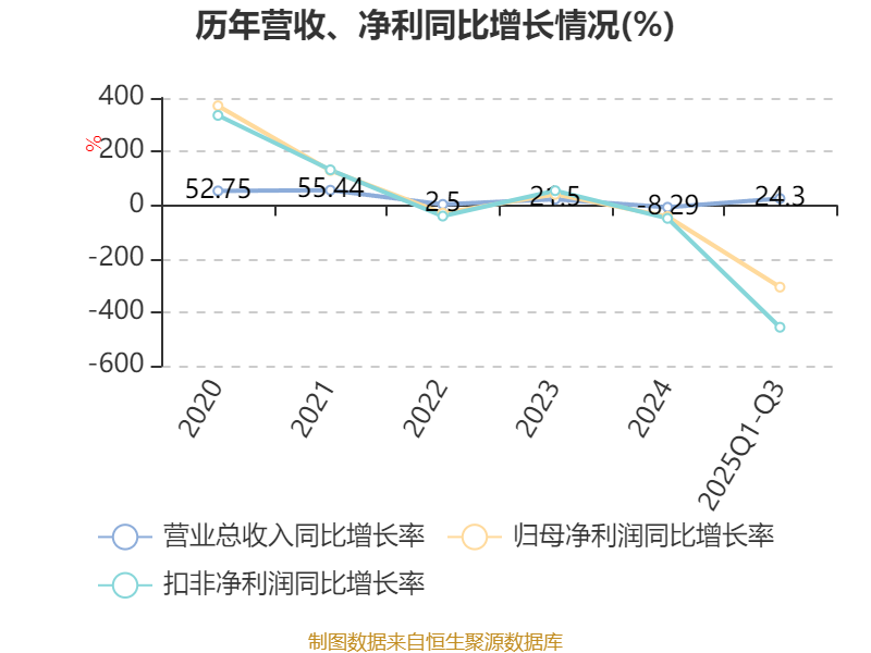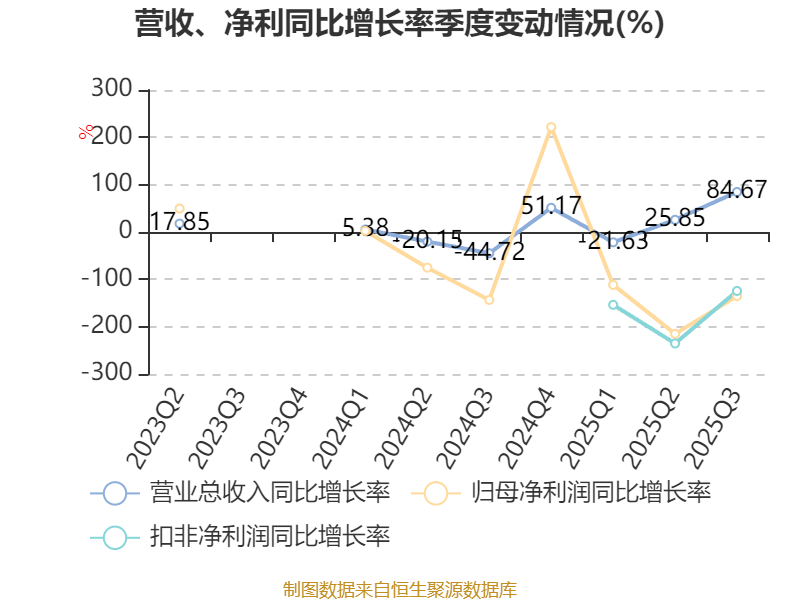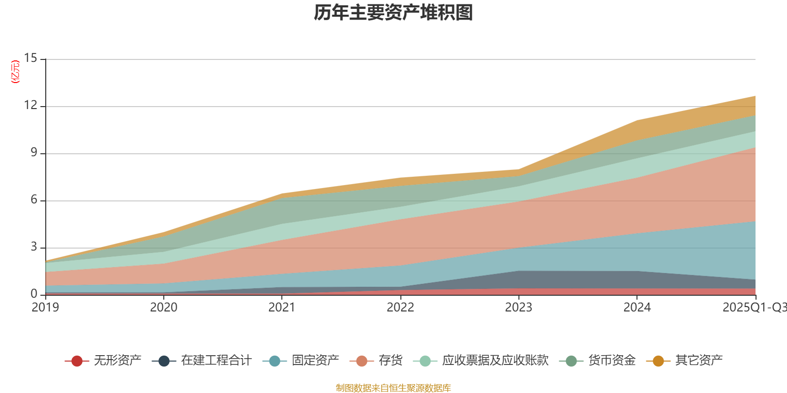 资产重大变化方面,截至2025年三季度末,公司固定资产较上年末增加54.32%,占公司总资产比重上升7.66个百分点;在建工程合计较上年末减少48.43%,占公司总资产比重下降5.46个百分点;存货较上年末增加32.83%,占公司总资产比重上升5.28个百分点;交易性金融资产合计较上年末减少92.98%,占公司总资产比重下降3.22个百分点。