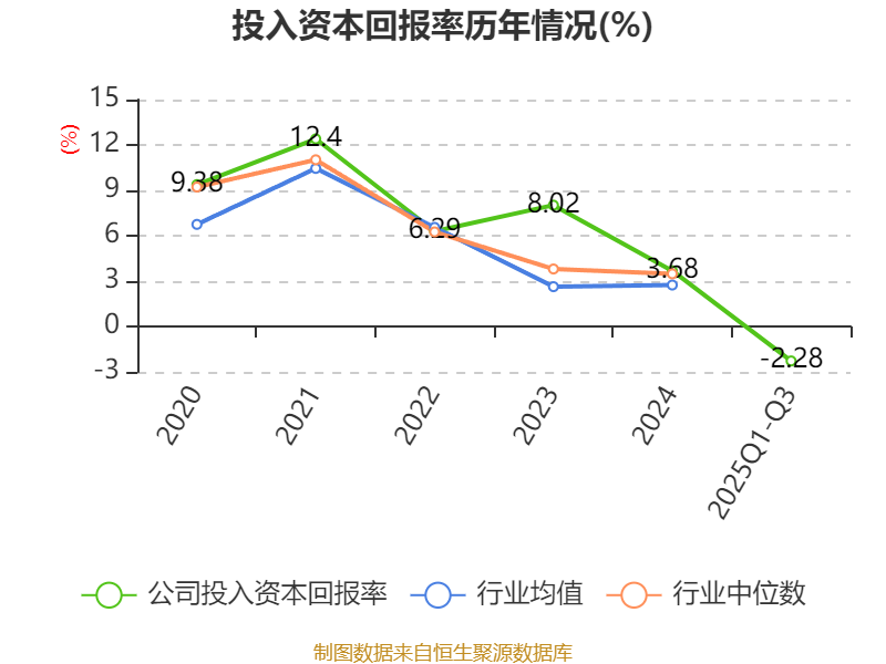 盈利能力方面, 2025年前三季度公司加权平均净资产收益率为-2.42%,同比下降3.92个百分点。公司2025年前三季度投入资本回报率为-2.28%,较上年同期下降3.64个百分点。
