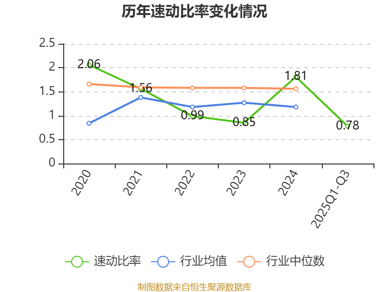 2025年前三季度,公司流动比率为2.09,速动比率为0.78。