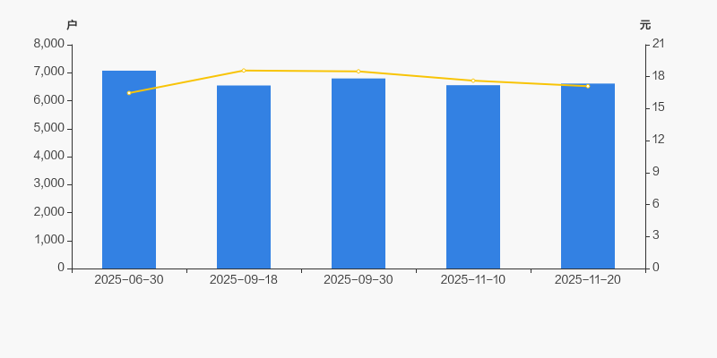 截至2025年11月20日,公司最新总股本为1.6亿股,其中流通股本为6777.82万股。户均持有流通股数量为1.03万股,较上期略有下降;户均流通市值17.54万元。