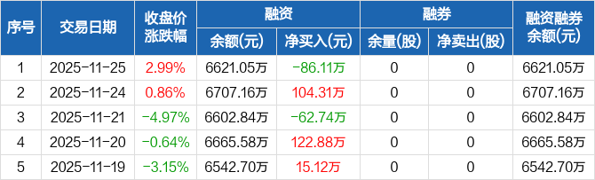 欧莱新材:融资净偿还86.11万元,融资余额6621.05万元(11-25)