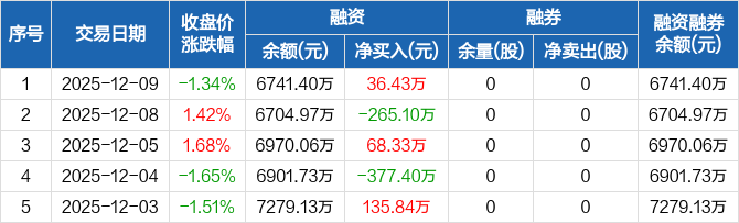 欧莱新材:融资净买入36.43万元,融资余额6741.4万元(12-09)