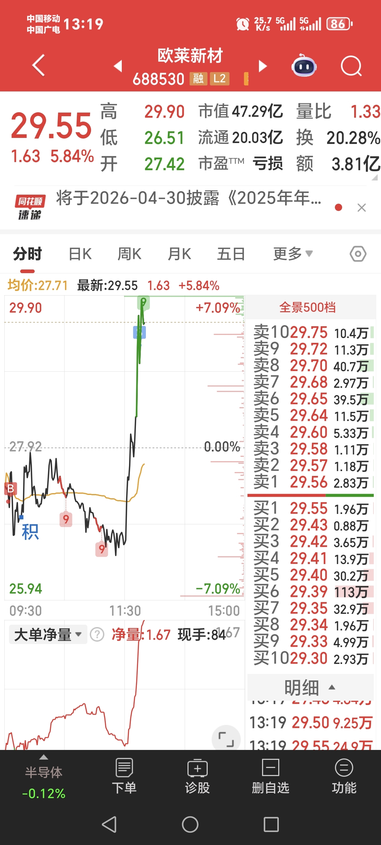 $欧莱新材(SH688530)$ 兄弟们,感谢主力大哥,这个票还没走完,继续看好,t了一下