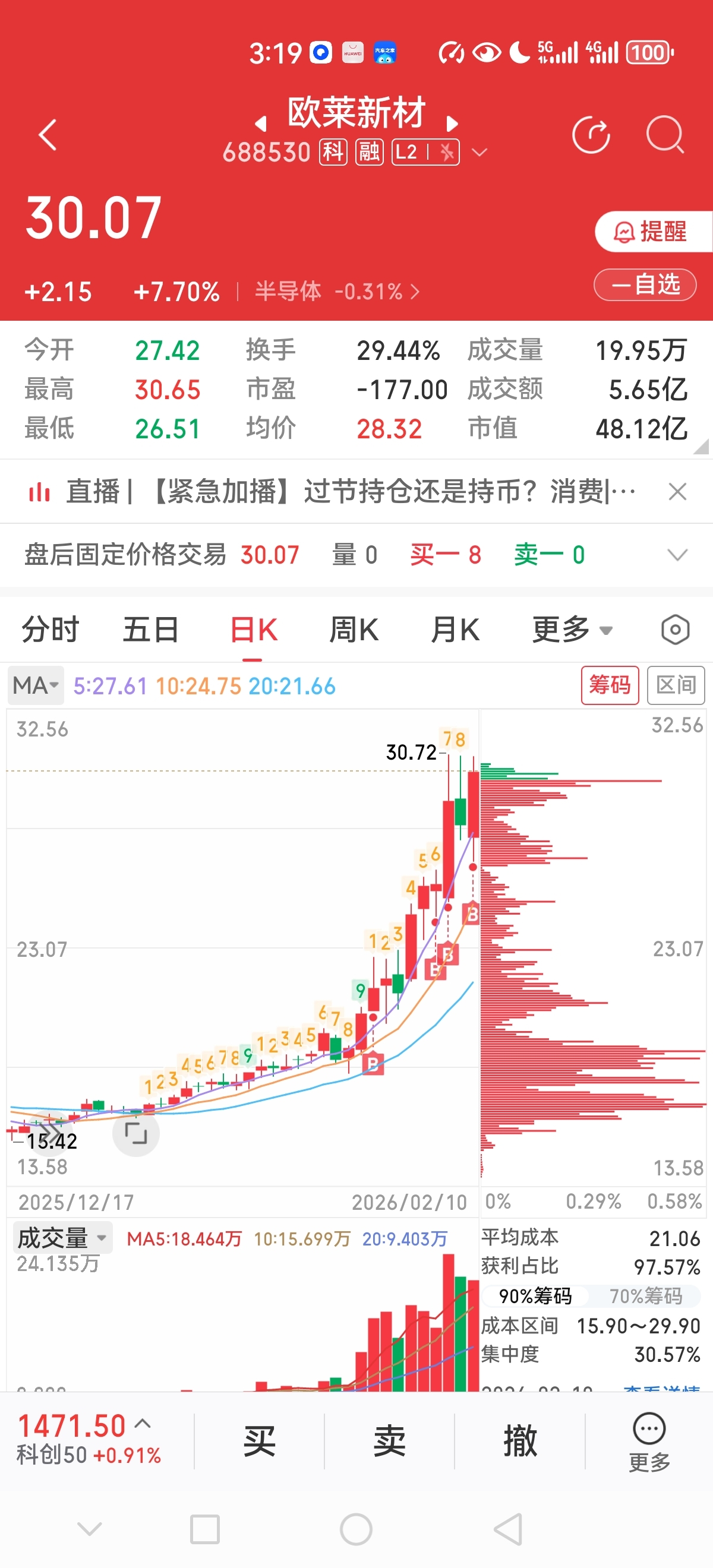 $欧莱新材(SH688530)$ 兑现承诺,只买不卖,拿满20万股为止,目前12万有余了