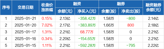 日联科技:融资净偿还358.42万元,融资余额2.13亿元(01-21)