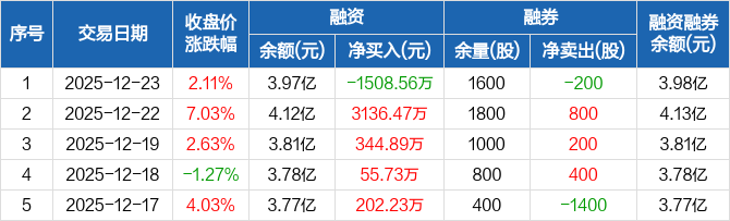 日联科技:融资净偿还1508.56万元,融资余额3.97亿元(12-23)