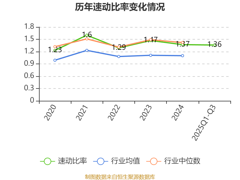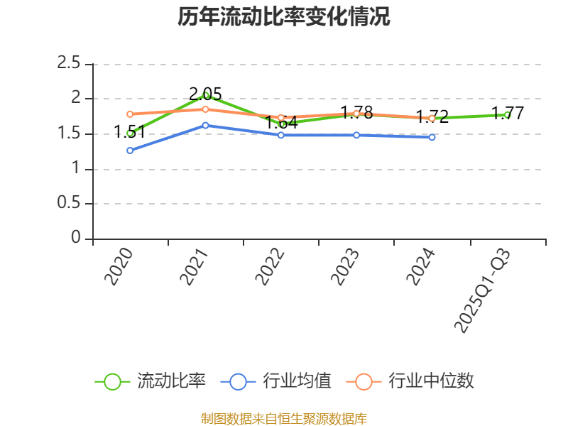 2025年前三季度,公司流动比率为1.77,速动比率为1.36。