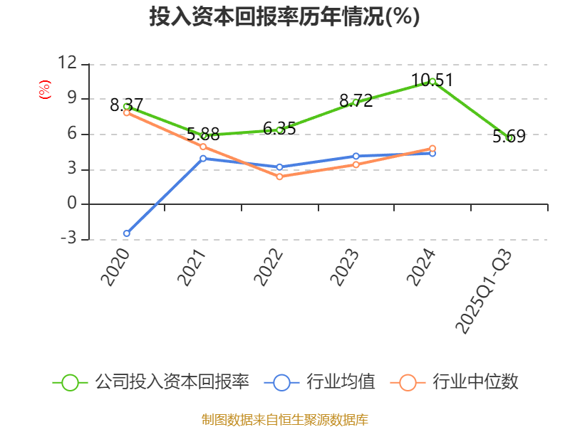 盈利能力方面, 2025年前三季度公司加权平均净资产收益率为8.17%,同比下降5.53个百分点。公司2025年前三季度投入资本回报率为5.69%,较上年同期下降2.88个百分点。