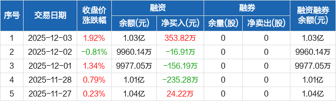 上声电子:融资净买入353.82万元,融资余额1.03亿元(12-03)